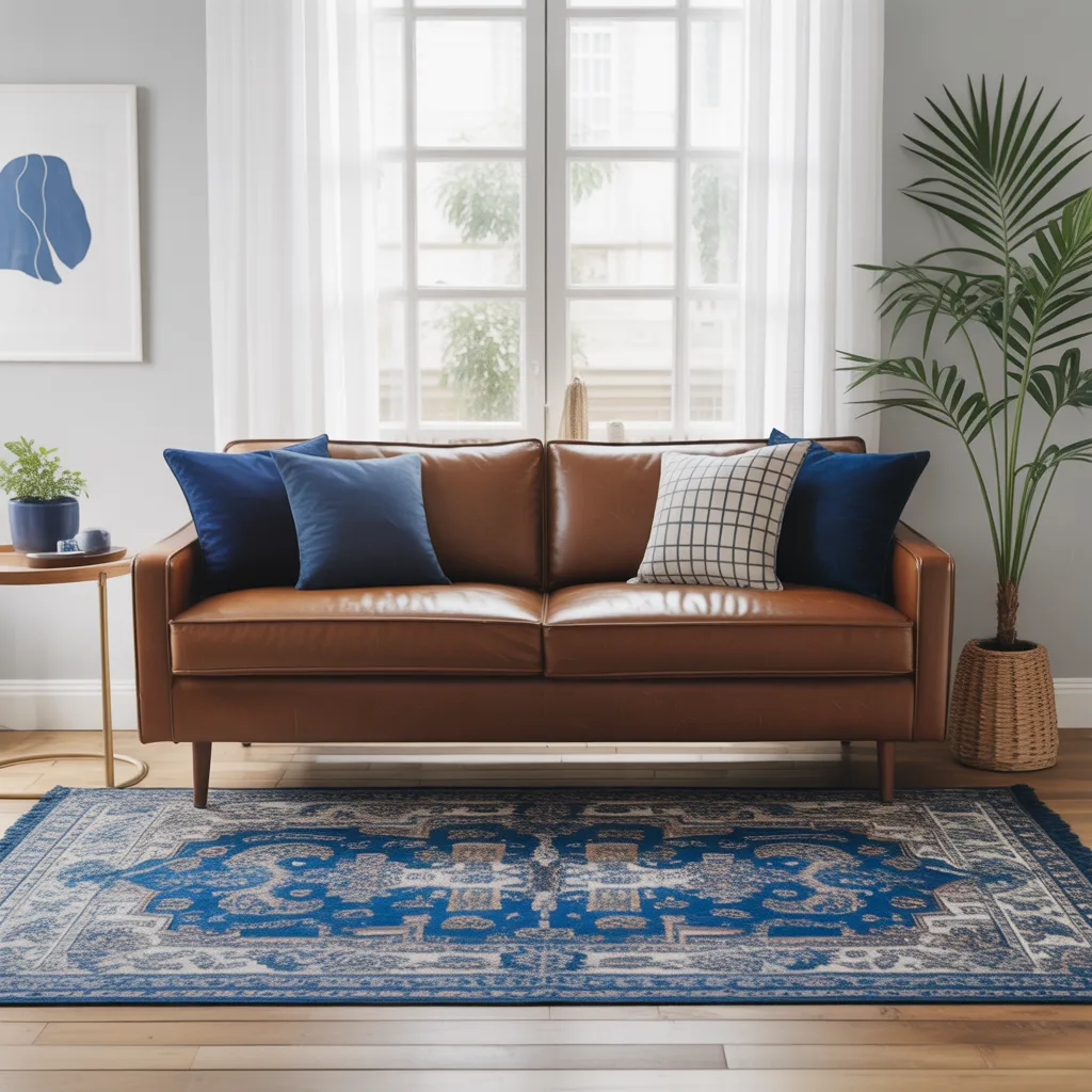 Why it works: Light rugs contrast beautifully with dark brown leather or fabric. They add softness and make your living room feel more inviting.